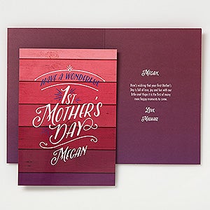 Celebrate her First Mother's Day in a special way with our First Mother's Day Personalized Greeting Card!