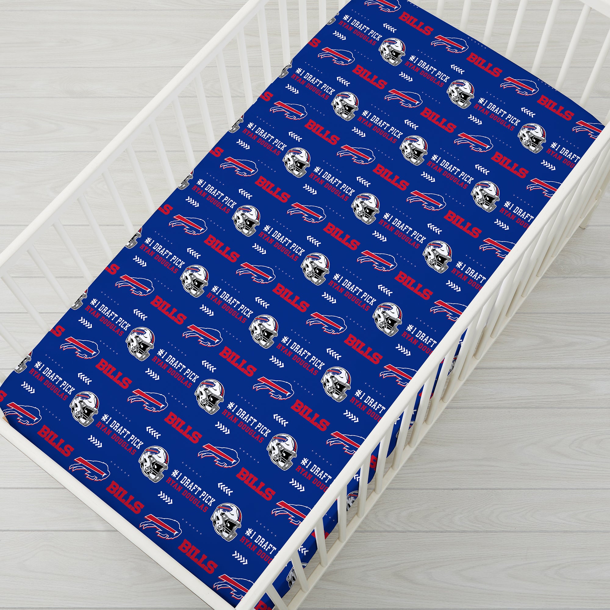 The NFL Buffalo Bills Personalized Crib Sheet adds baby's name to your favorite team logo and makes a truly personal nursery design. This crib sheet makes a great gift for a newborn baby boy or girl!