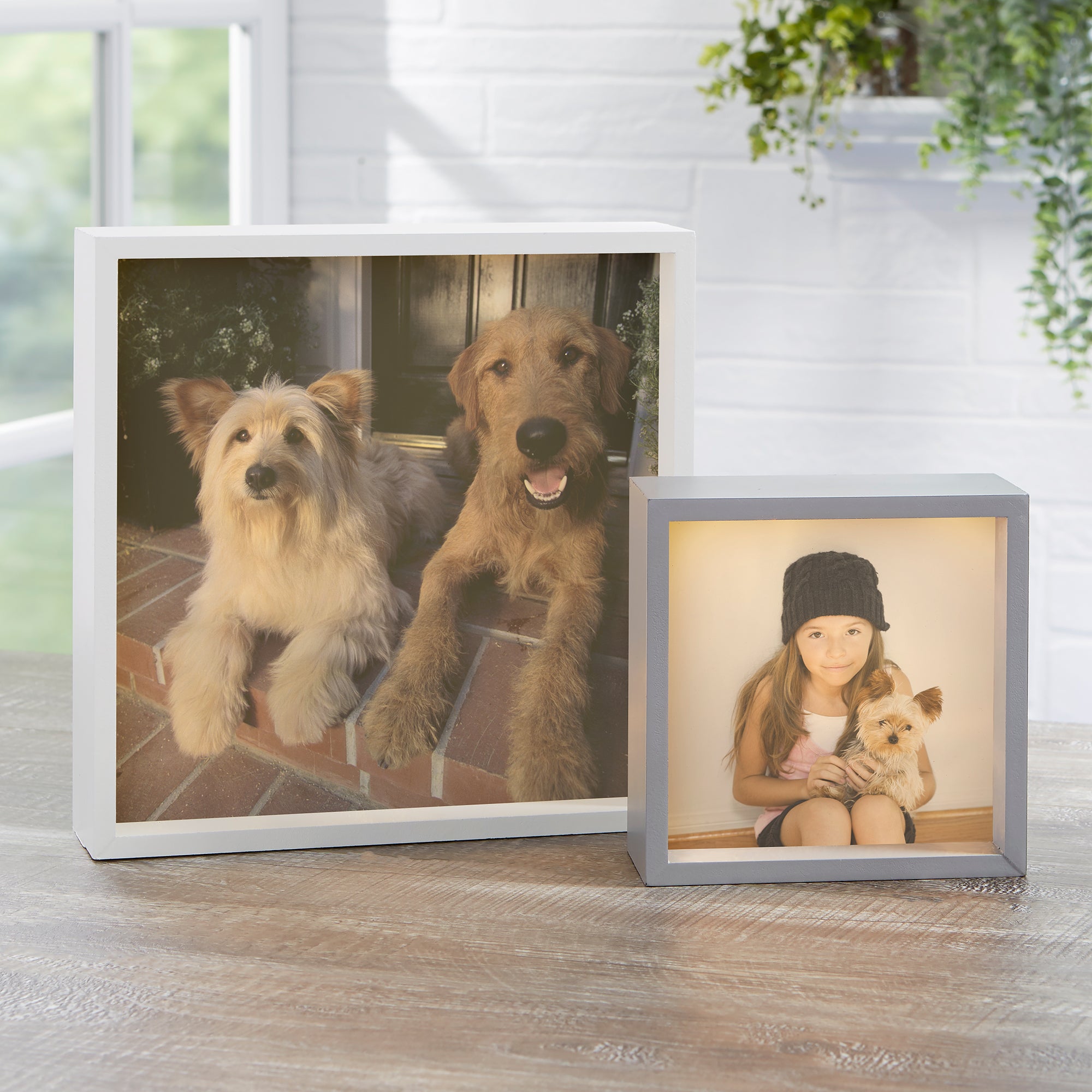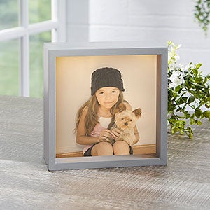 Add a touch of light to your home décor with our Personalized Pet Photo LED Light Shadow Box. Each light box is sold individually, so you can add it to one of our décor designs or build your own light up photo shelf display.