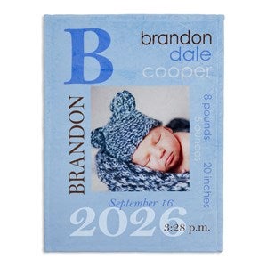 - Upload any photo and personalize the blanket with a full name and birth information