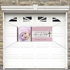 When your child's christening is in order, shout it out loud and proud with our God Bless Personalized Photo Christening Banner! this banner is perfect for Baptisms, Christenings and Dedications; paying tribute to your special little one!