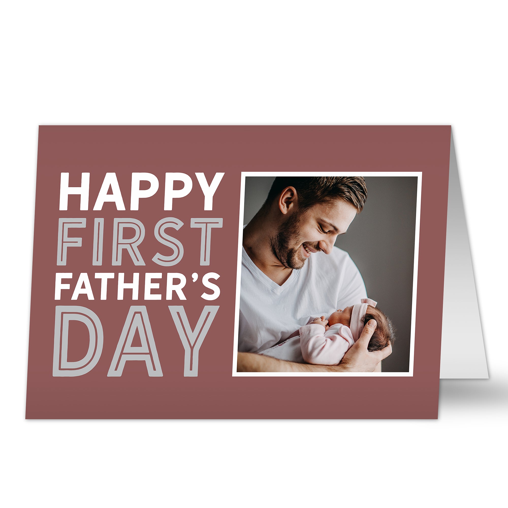 Celebrate dad with the First Father's Day Personalized Photo Greeting Card. This card features any photo, making a special gift for dad.