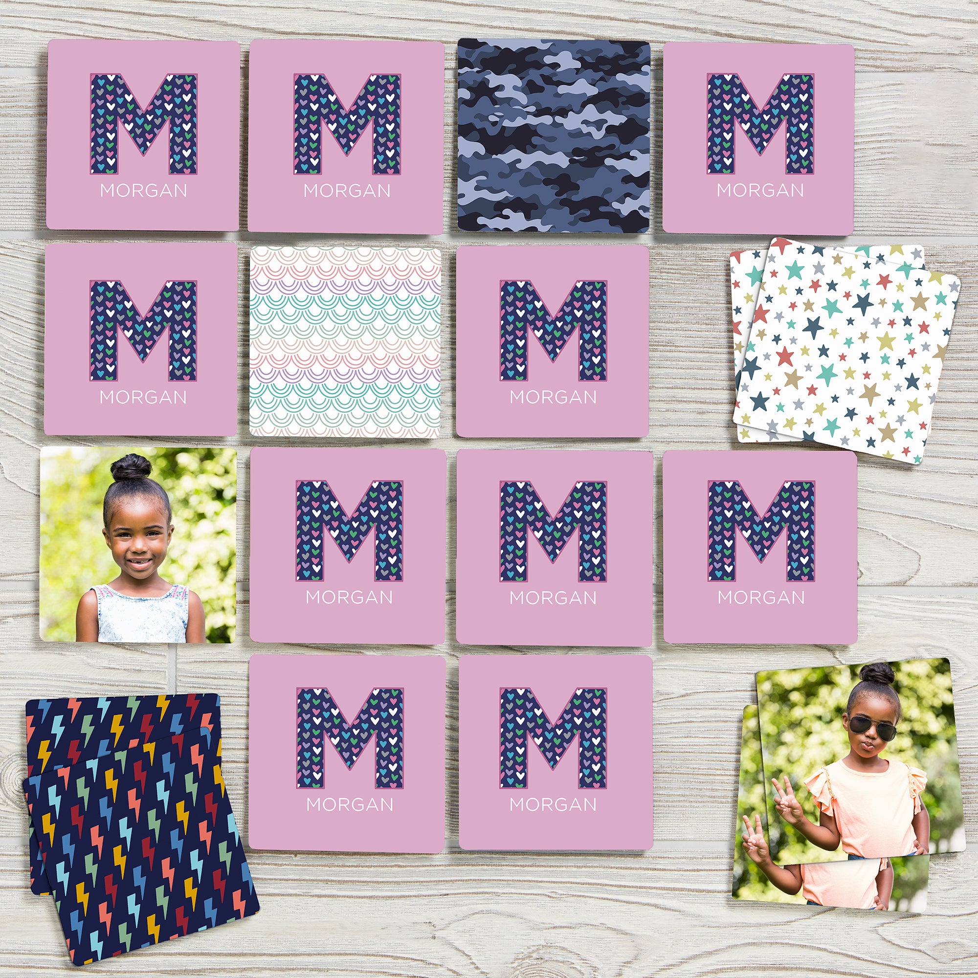 Your child will be delighted when they receive our Pop Pattern Personalized Photo Memory Game.