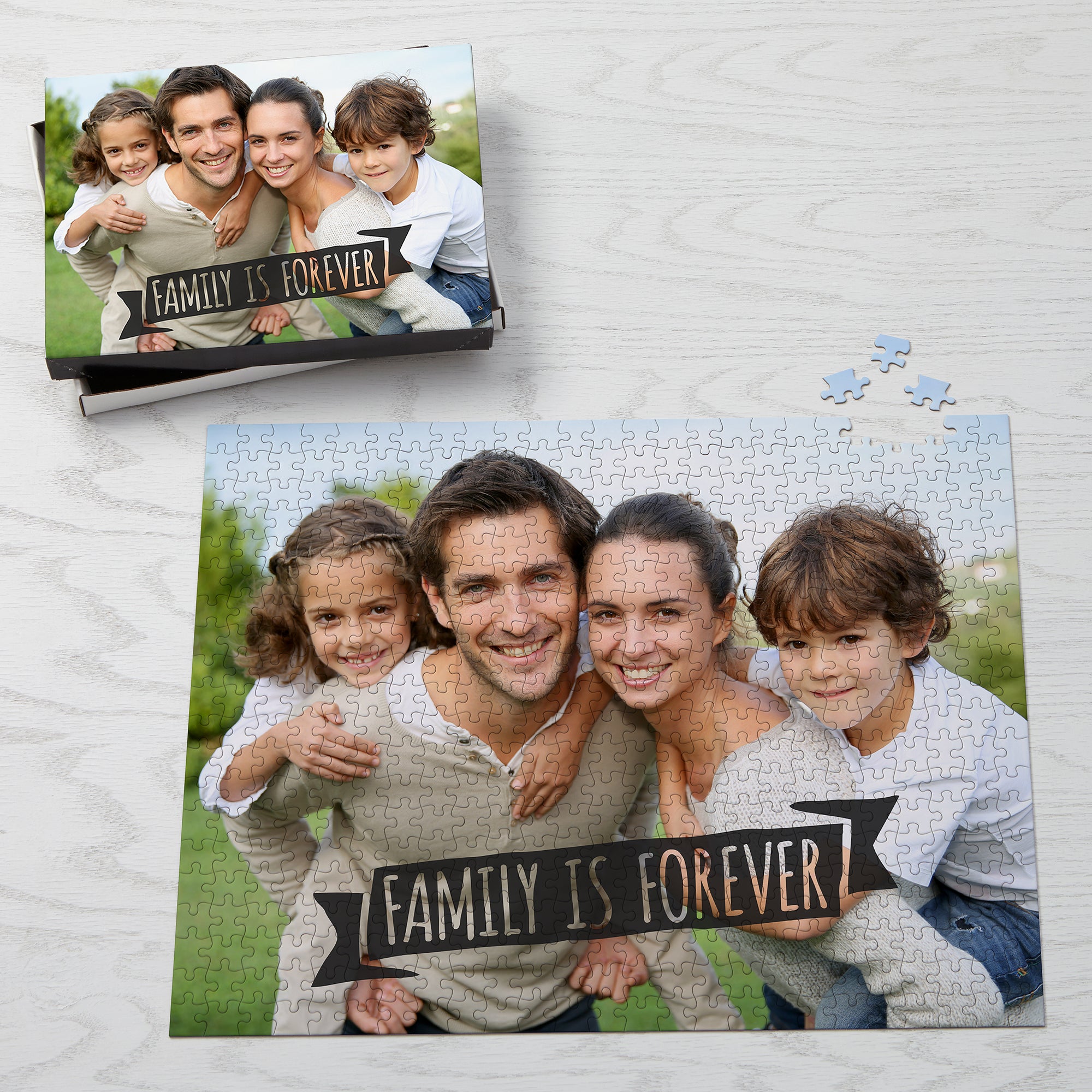 Piece together a favorite photo and phrase and discover the finished surprise with the Photo Expressions Personalized Jumbo 500 Piece Photo Puzzle.