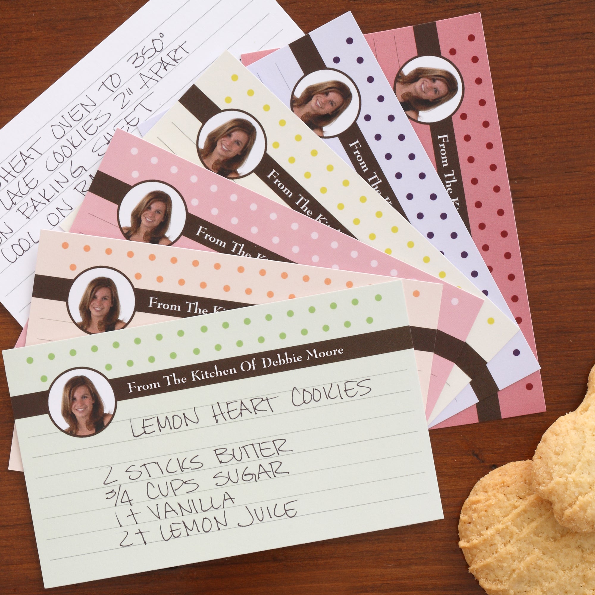 Our exclusively designed From The Kitchen Of... Photo Recipe Cards are the perfect cooking accessory for the chef that always has delicious delicacies and tasty treats in the making! Show off your favorite chef's smiling face on their choice of 6 delicious background colors for a recipe card truly "made to order"!