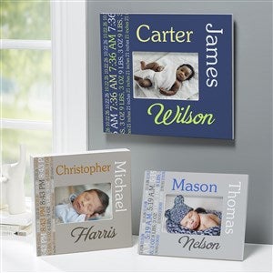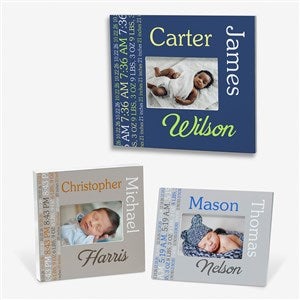 When only the sweetest frame will do to showcase their photo debut, choose our exclusive Darling Baby Boy Personalized Picture Frame.