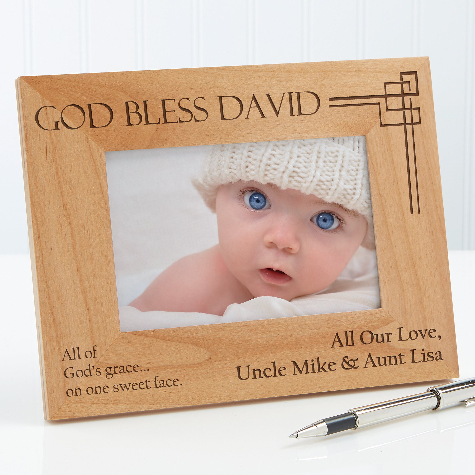 - Personalize with 1-line of text across the top of the frame