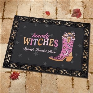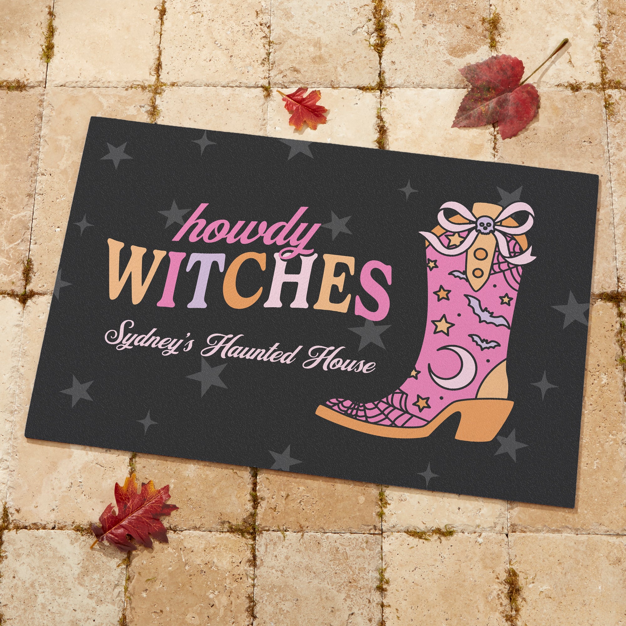 Welcome guests with a touch of Pinkoween charm! This doormat features a bold pink cowgirl boot with celestial details and a playful greeting that sets the tone for spooky-season fun. Durable and stylish, it’s perfect for porches, entryways, or haunted houses alike—and you can personalize it with your family name for a one-of-a-kind seasonal accent.