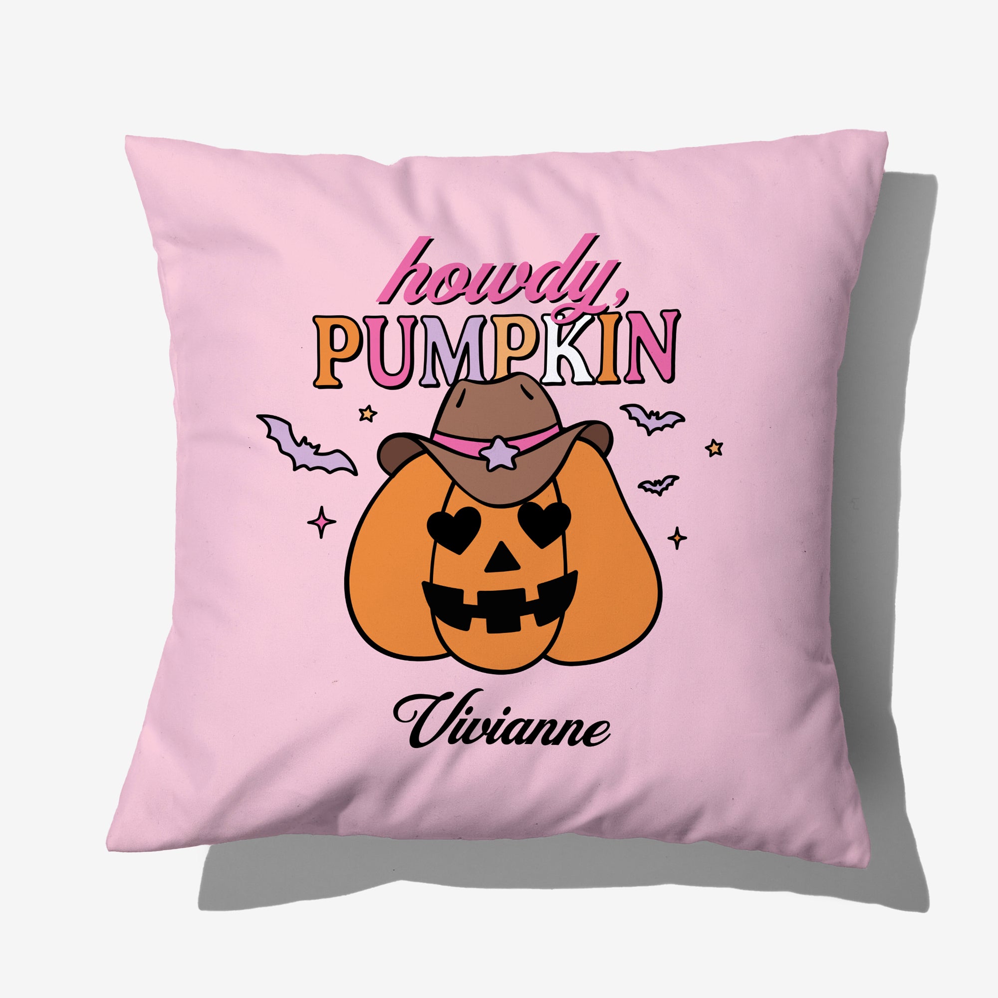 Celebrate Pinkoween with a pop of velvet! This soft pillow features a playful “Howdy Pumpkin” design with a customizable message, making it a cozy and festive accent for your home.