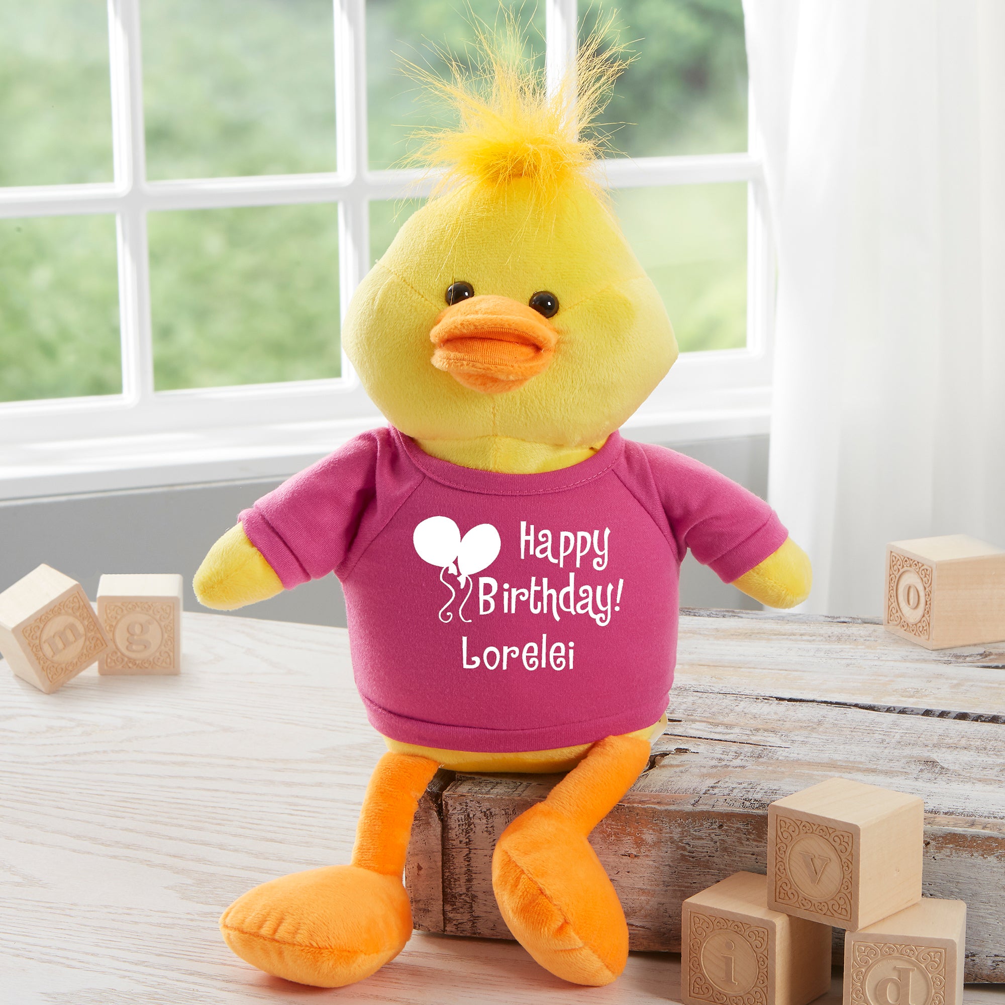 Send your best wishes to the birthday boy or girl with our exclusive Happy Birthday Personalized Plush Duck! His plump little tummy and super soft feathers make him perfect for snuggling all year through!