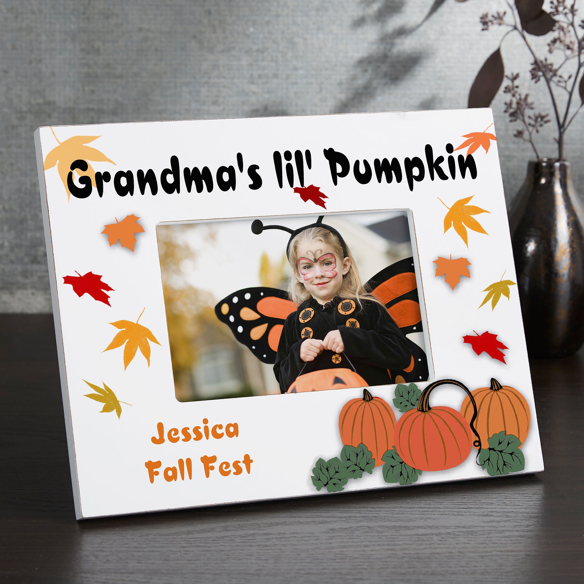 Our exclusive Pumpkin Patch Frame beautifully captures the warm colors of the Fall season within the brightly-colored leaves and radiant orange pumpkin patch. Fall into autumn and the Halloween season this year by showcasing a favorite seasonal moment from today or yesteryear.