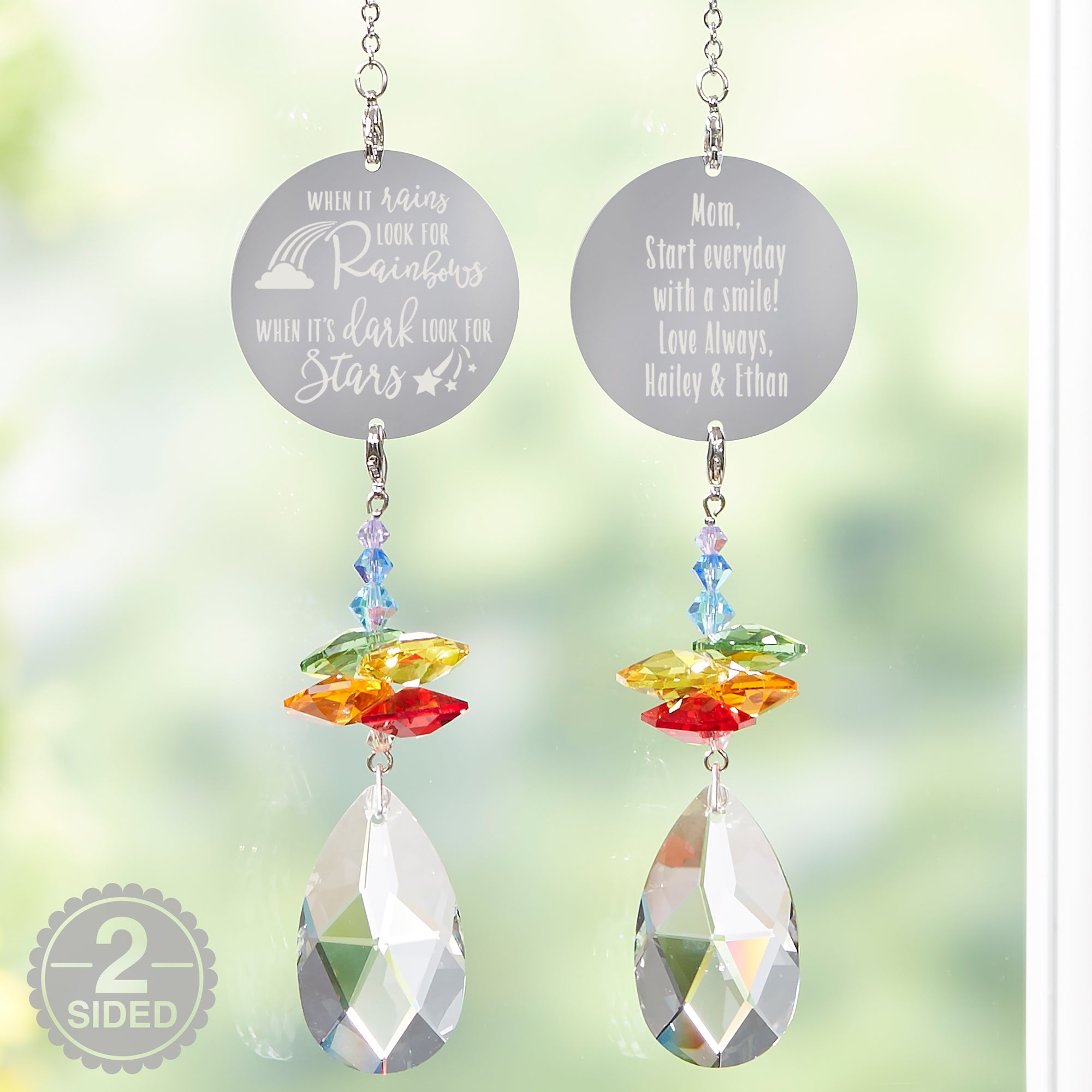 Our wonderfully unique Inspiration From Above Personalized Rainbow Suncatcher expresses your sentiment and adds a personal touch to a bright window in her home!