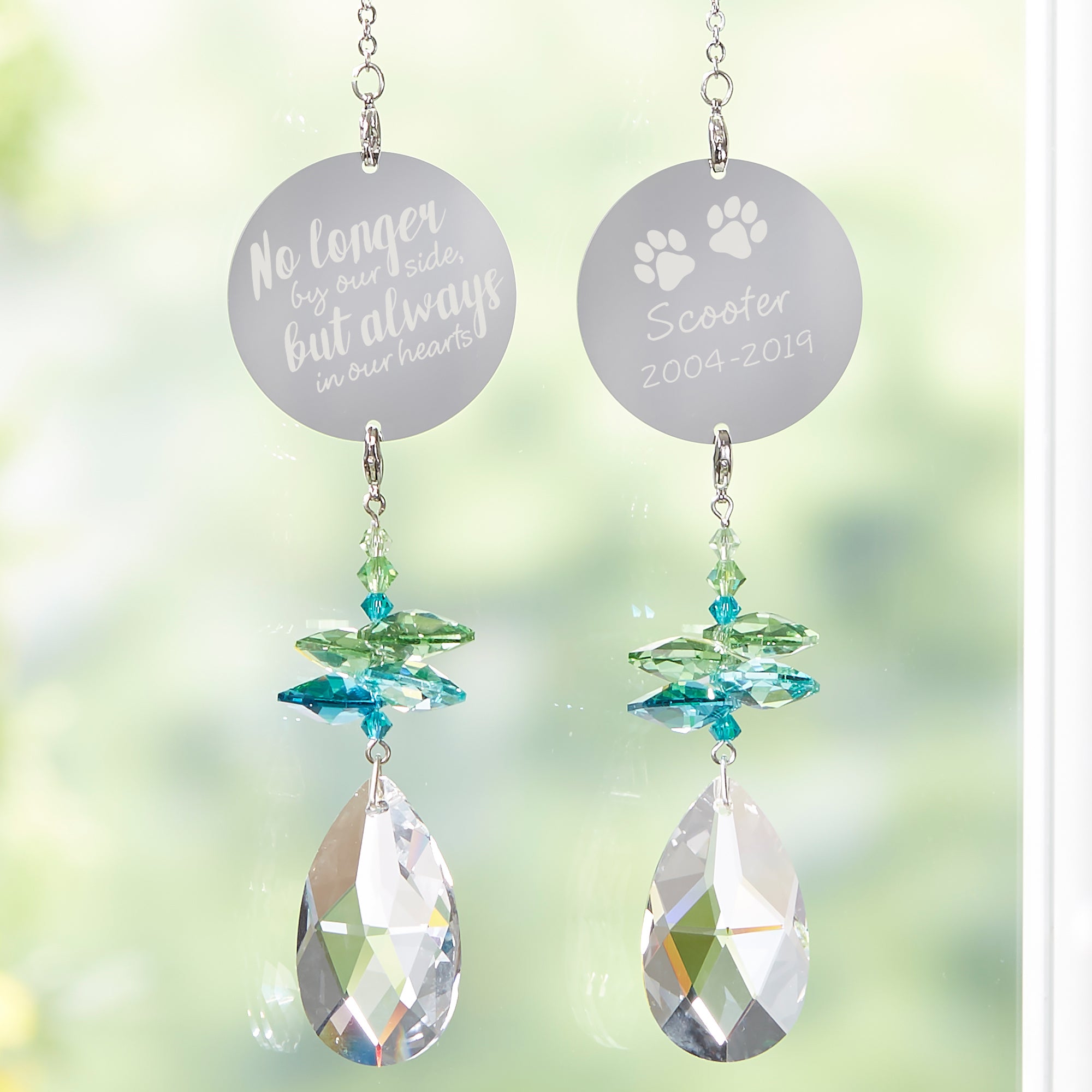 Our Paw Prints On My Heart Personalized Rainbow Suncatcher is the perfect keepsake to honor the memory of a beloved pet.