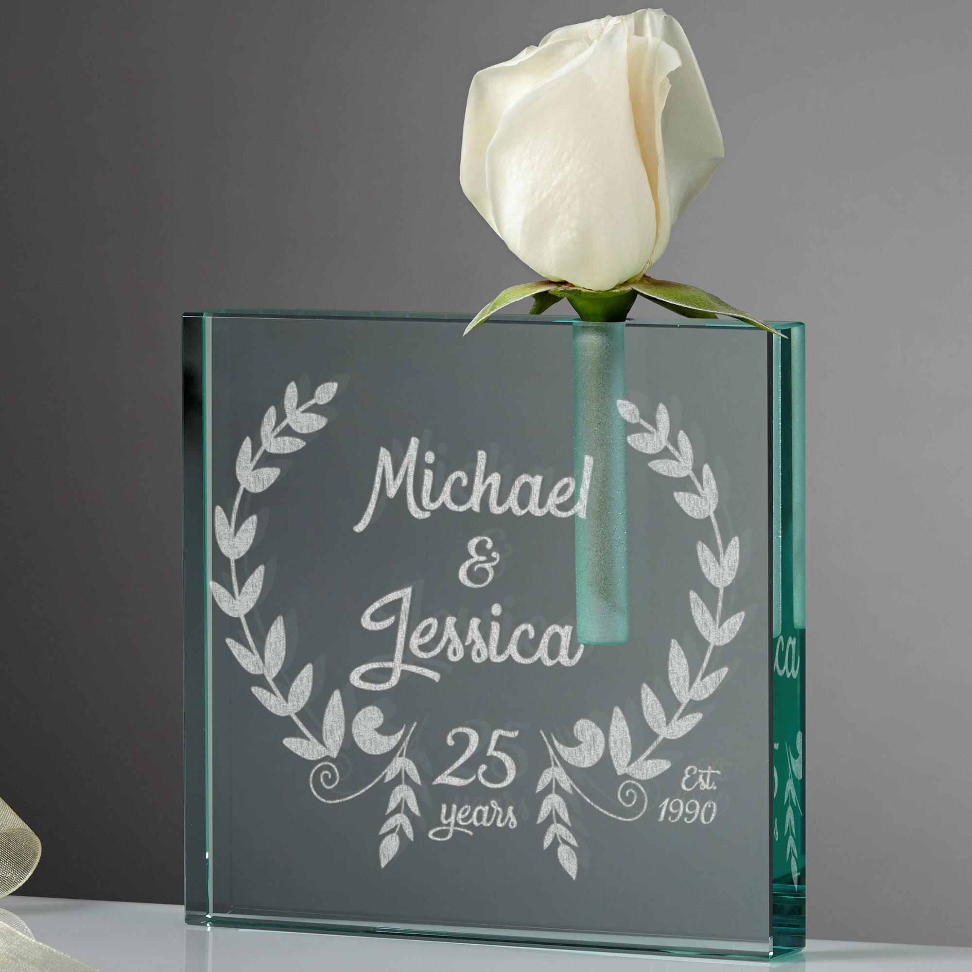 Celebrate all of your years of love and romance with our Happy Anniversary Personalized Bud Vase.