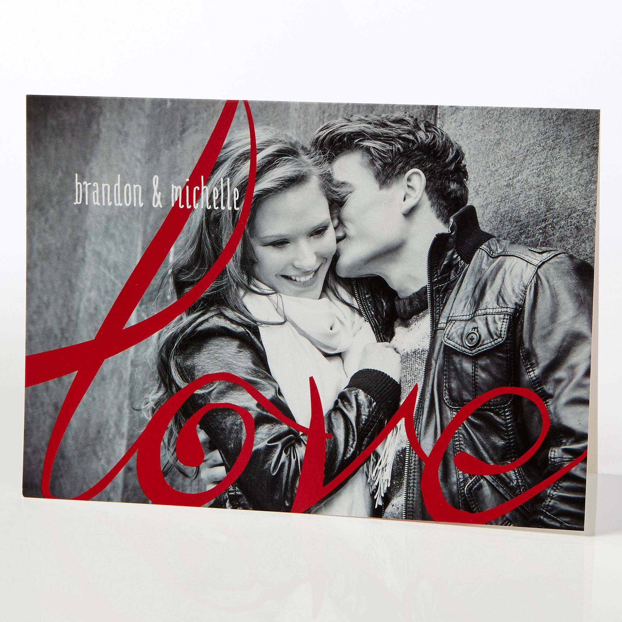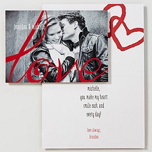 Celebrate that special someone in your life with this personalized greeting card. Customize your card by choosing love or hearts, uploading your favorite photo and including any name, printed across the front of the card for a very personal touch. Your picture will always print in black and white.