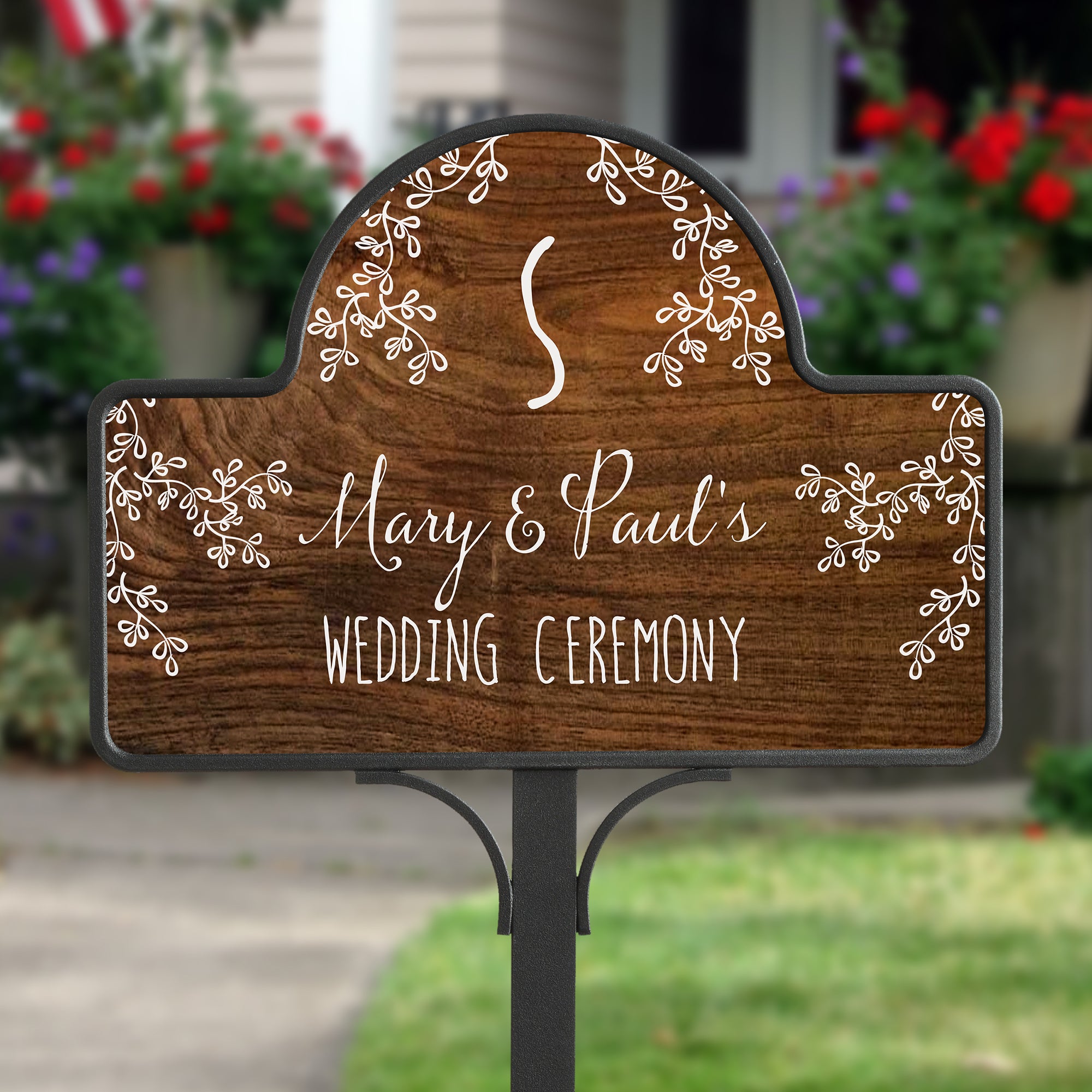 Guide your guests on your wedding day with this wonderfully unique Our Rustic Wedding Personalized Magnetic Garden Sign!