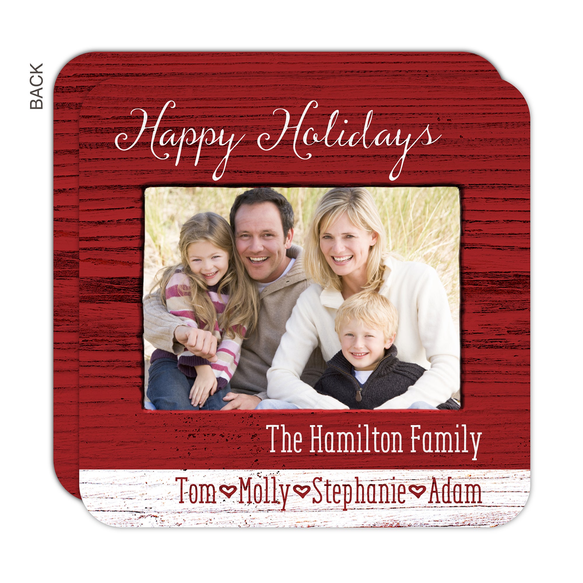 Spread holiday cheer this Season and send customized wishes to your friends and family with this traditional design that is sure to warm the recipient's heart.