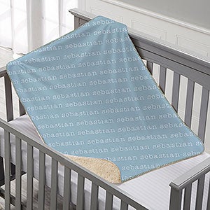 Our luxuriously, soft Repeating Name Personalized Premium Baby Sherpa Blanket is wonderfully constructed of a silken faux micro mink front accompanied by a faux sheepskin Sherpa back side sure to keep baby warm and makes for a special keepsake for both parents and baby. This blanket makes a great gift for a newborn baby boy or girl!