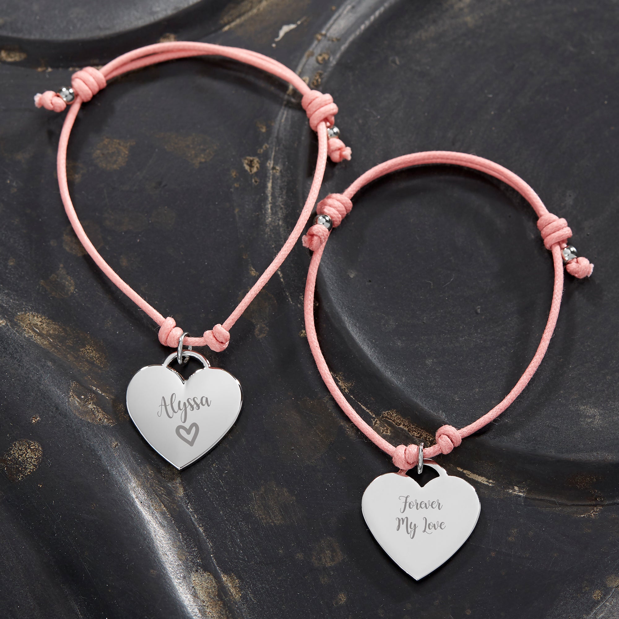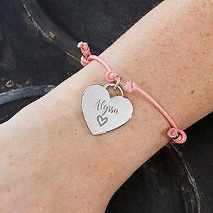 Give her a special gift she will wear with pride with our Personalized Sliding Knot Romantic Bracelet. Featuring an adjustable cord and sleek heart charm, this bracelet makes a great gift for a birthday, Valentine's Day or just to show her how much she means to you.