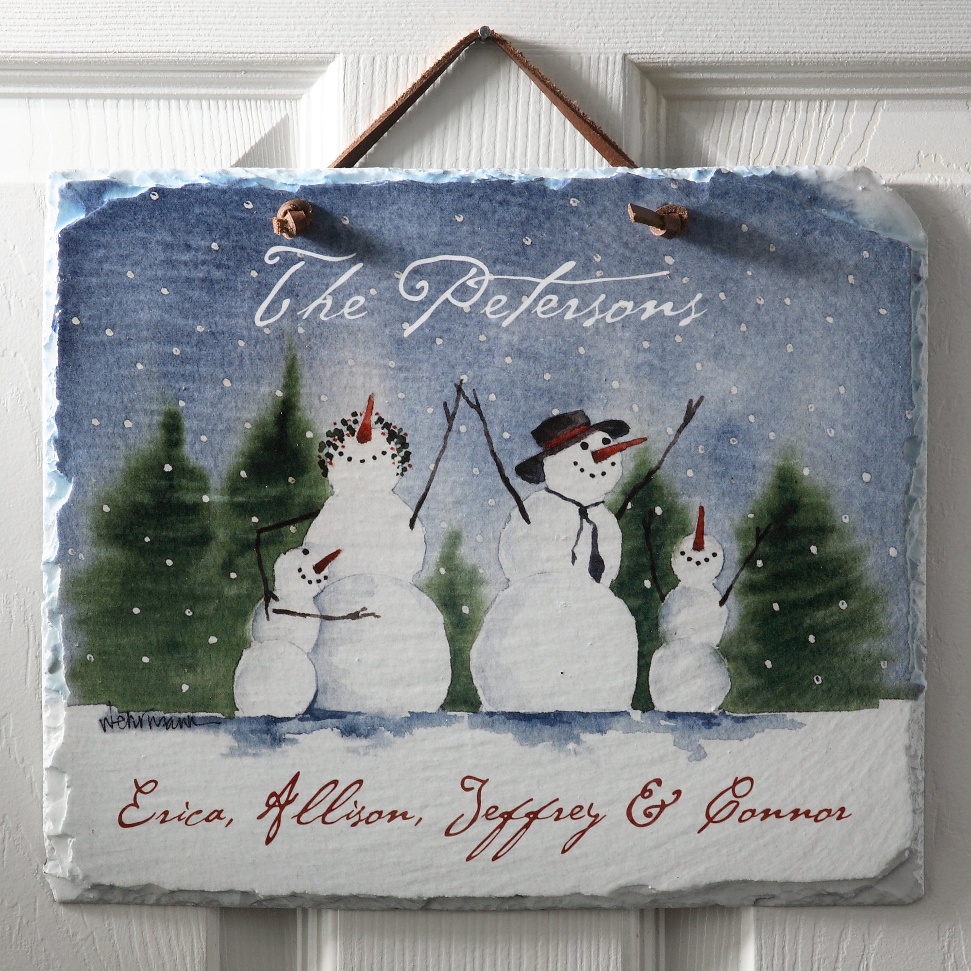 Let the entire family extend a warm welcome to friends and family with our exclusive Snow Family Personalized Slate Plaque!
