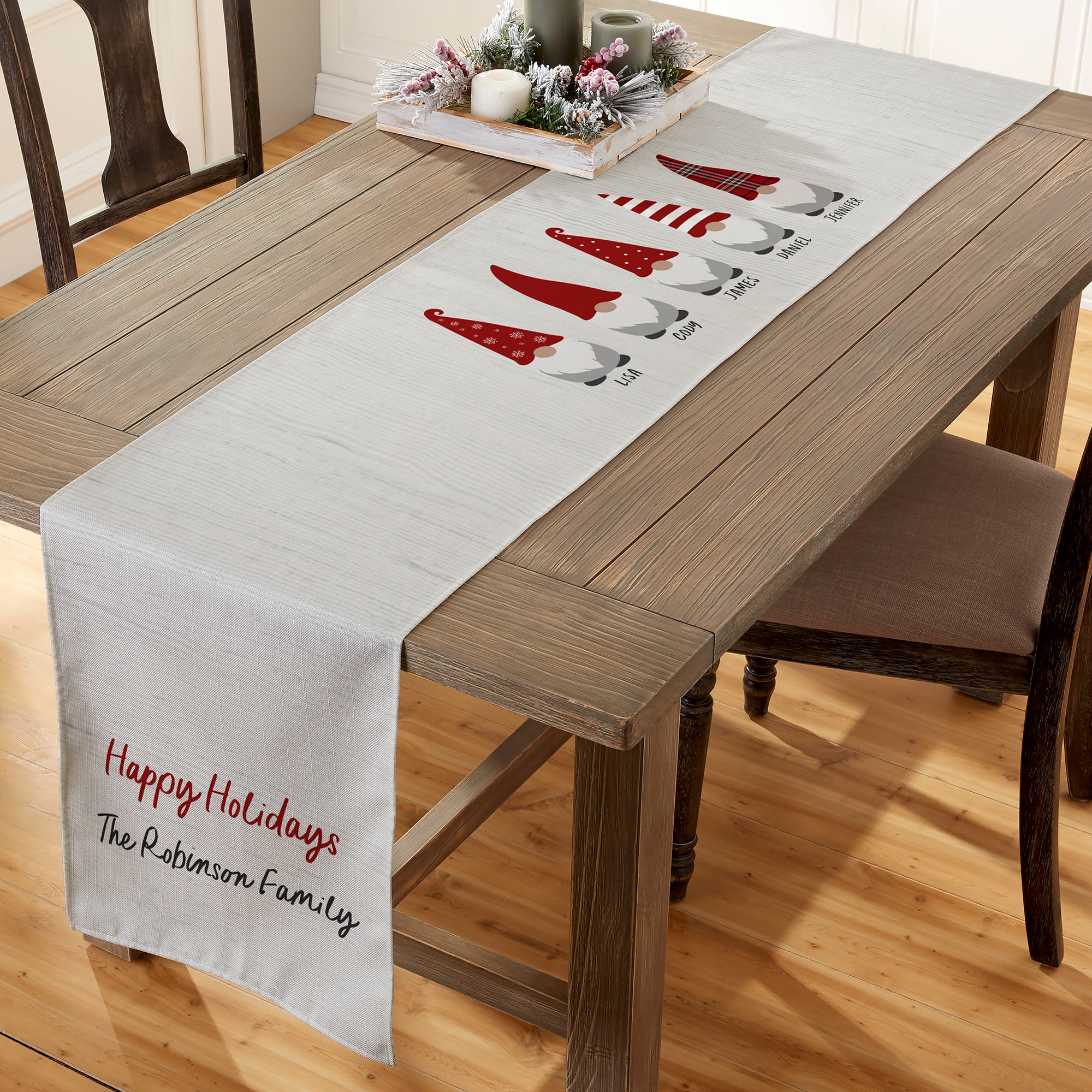 Christmas Gnome Family Personalized Table Runner