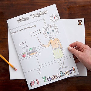 - Personalize the front with your choice of teacher character to color in