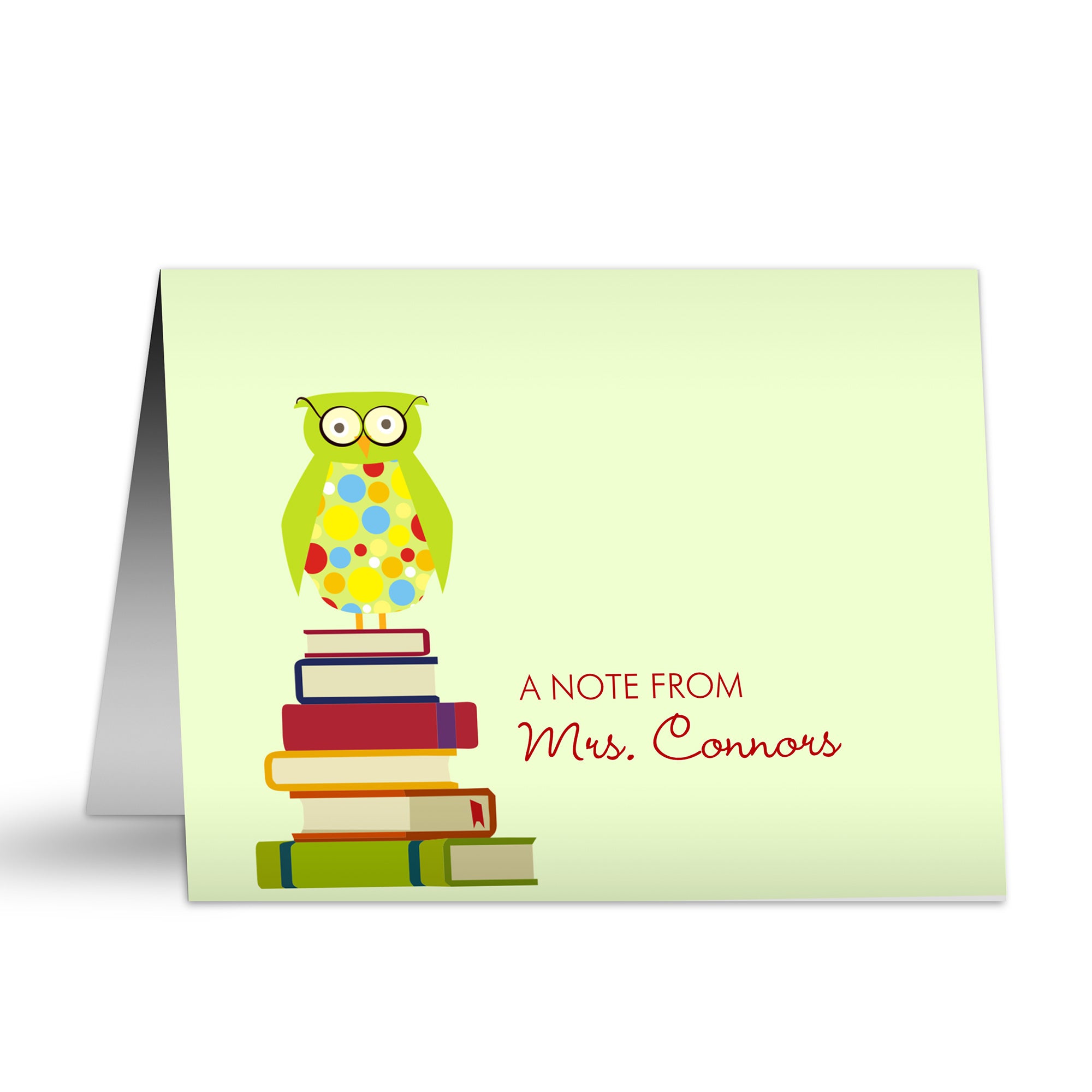 Send correspondence in signature style with our Wise Owl Personalized Note Cards. This stationery is the perfect gift for any teacher to send notes home with children or send thank you cards!