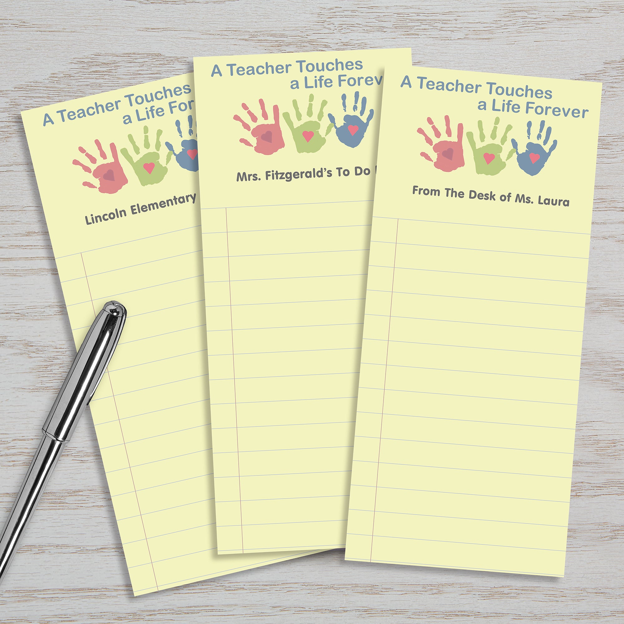 Just think of how touched the teacher in your life will be every time they jot down a note on our Touches A Life Notepad Set you personalized just for them!