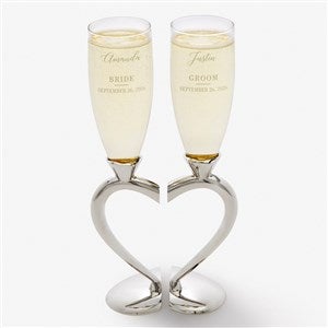 Our Connected Hearts Personalized Wedding Flute Set makes a modern and contemporary wedding gift that is perfect for sipping champagne or sparkling wine! Each flute features a romantic connecting design with sleek flute bowl to create a beautiful keepsake for the couple.