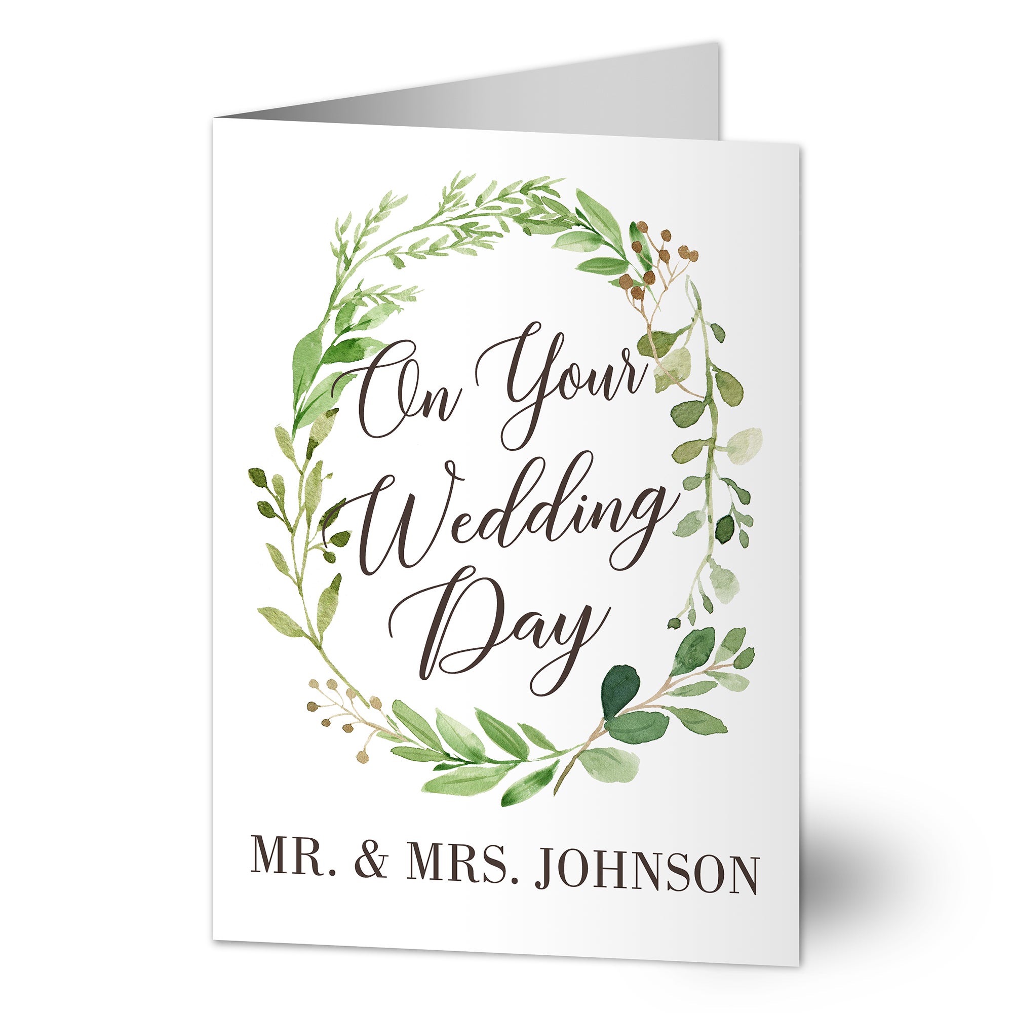 Give wishes of love and congratulations to the happy couple to accompany your gift with our Laurels of Love Personalized Greenery Wedding Card!