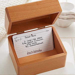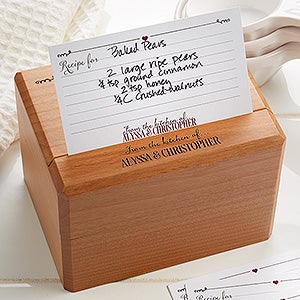 Our Recipe For A Happy Marriage Personalized Recipe Box is the perfect place to store all those secret family recipes!