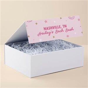 Elevate your gift-giving with our personalized gift boxes that they will be able to reuse and display after! This design is perfect for birthdays, bridal parties, bachelorettes, and a variety of other occasions. Personalize with a name, phrase, and date.