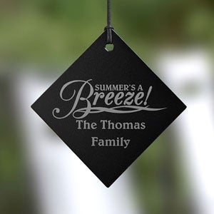 - Wind catcher is engraved with the phrase "Summer's a Breeze| along with any two-line name or sentiment