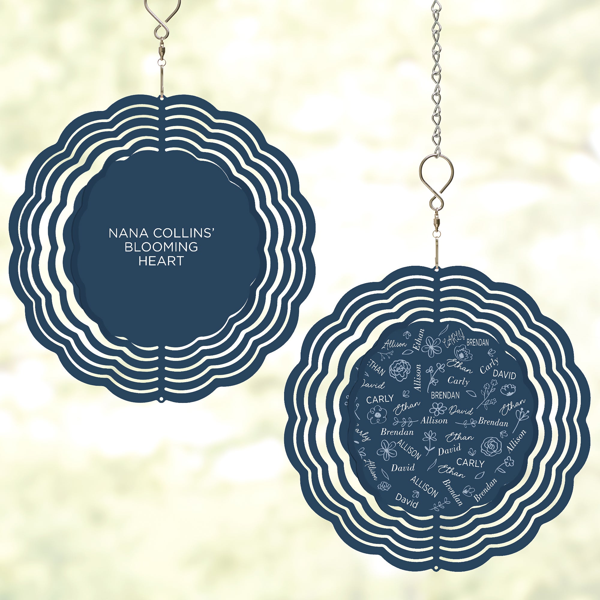 The Blooming Heart Personalized Wind Spinner  opens up into a beautiful piece of art that moves and spins in the wind. Hang outside in the garden or off of a porch when you open the spinner into a beautiful piece of art that moves and spins in the wind.