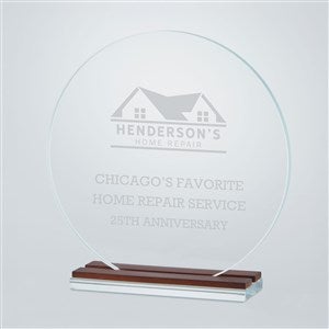 Show appreciation to your hardest working employee with the Personalized Logo Office Round Glass and Wood Award. This item is custom engraved with any name, logo, and/or text and is the perfect award for any occasion.