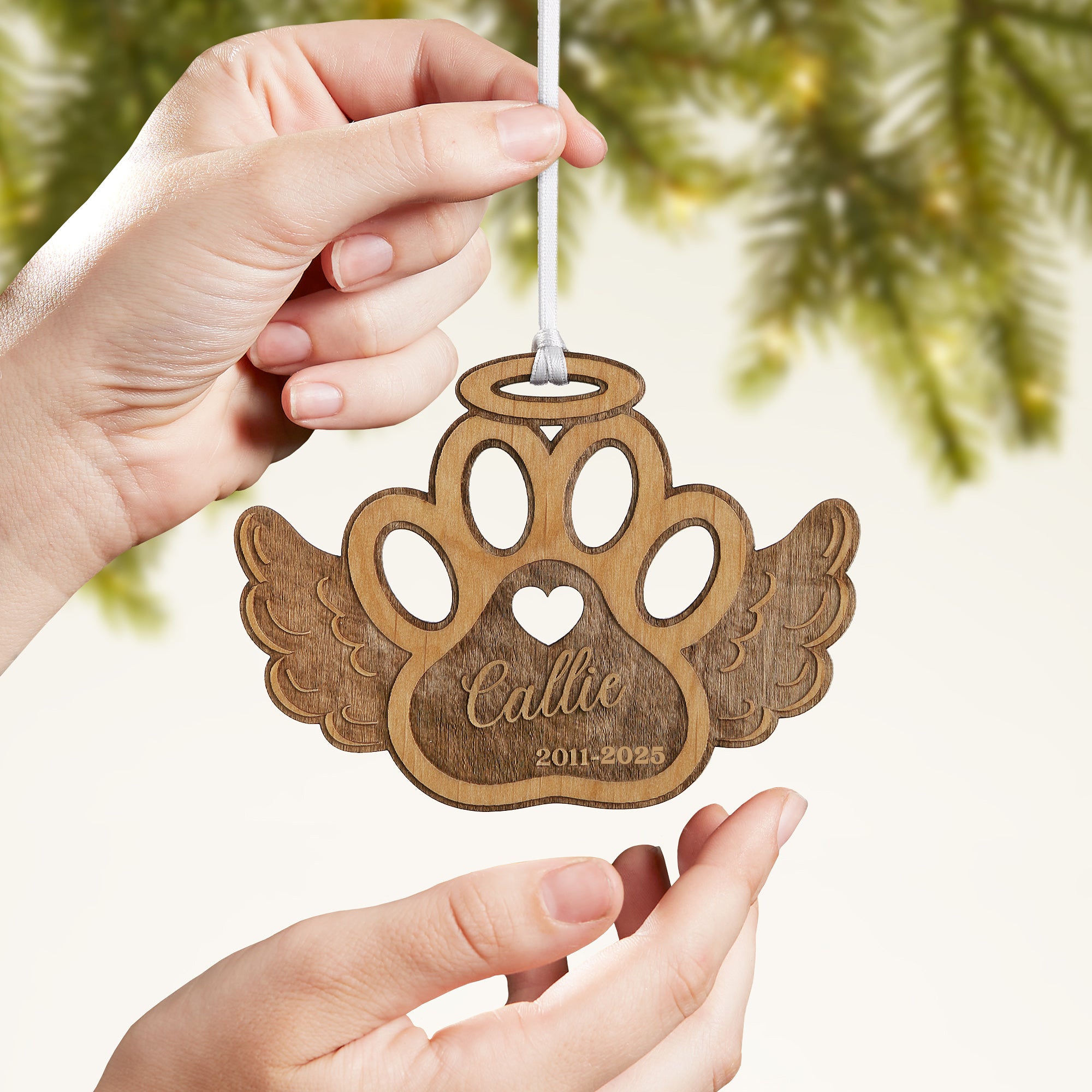 Our Pet Memorial Wings Personalized Wood Ornament is the perfect keepsake to honor the memory of a beloved pet.