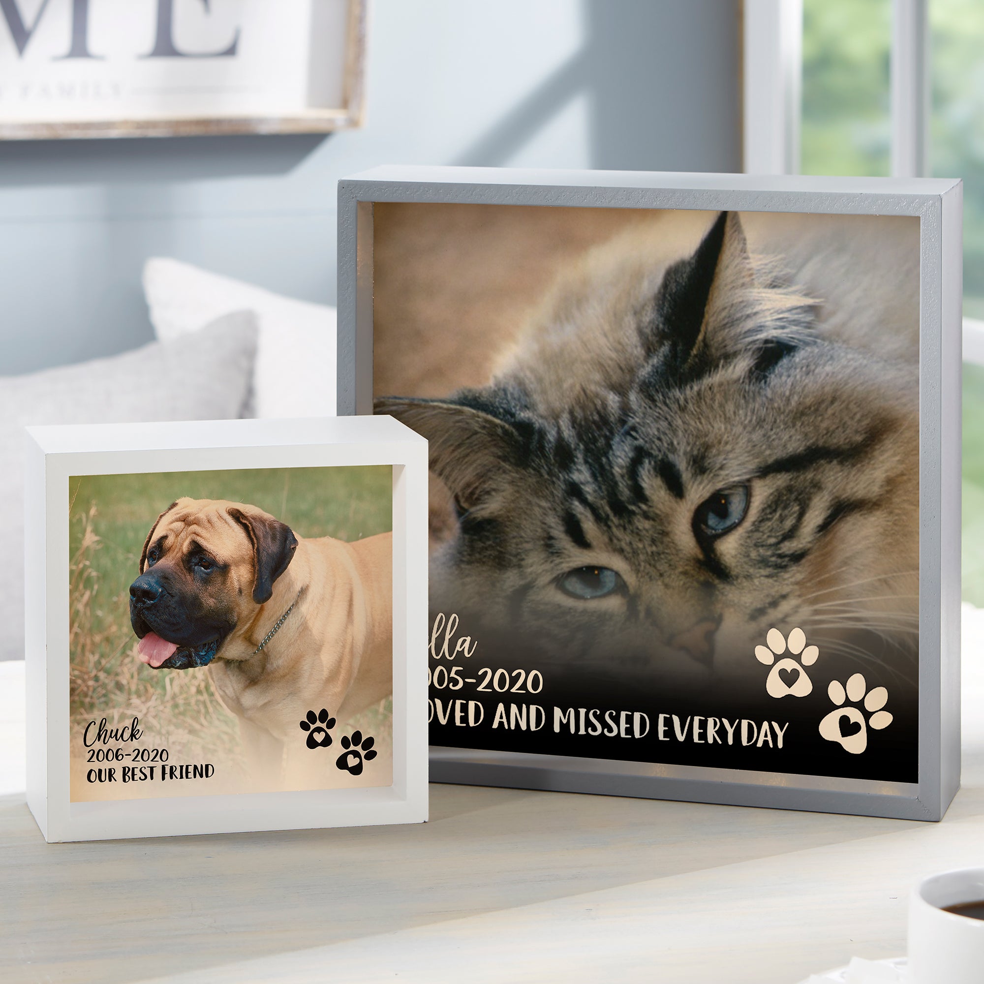 There is nothing like the love you have for a loyal companion. Keep the fond memories alive now and forever with the exclusive Pet Memorial Personalized LED Shadow Box.