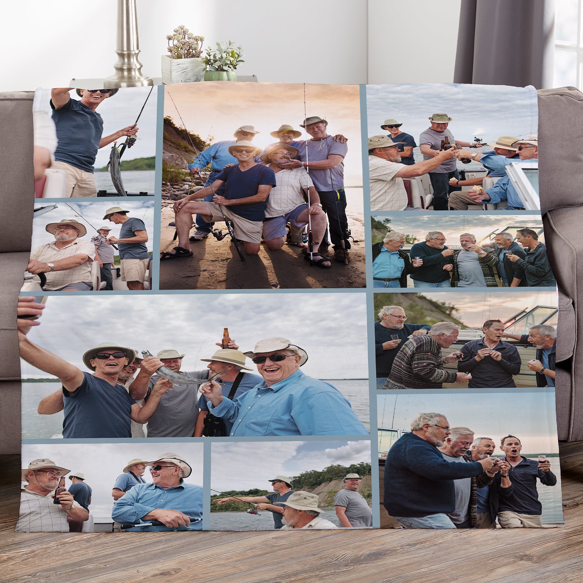 They will relax surrounded by the faces of those they love with our Photo Gallery For Him Personalized Blanket. This custom photo blanket is ideal for outdoor sporting and leisure events year round, watching their favorite TV show, or for snuggling indoors with a good book.