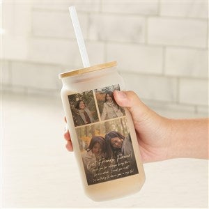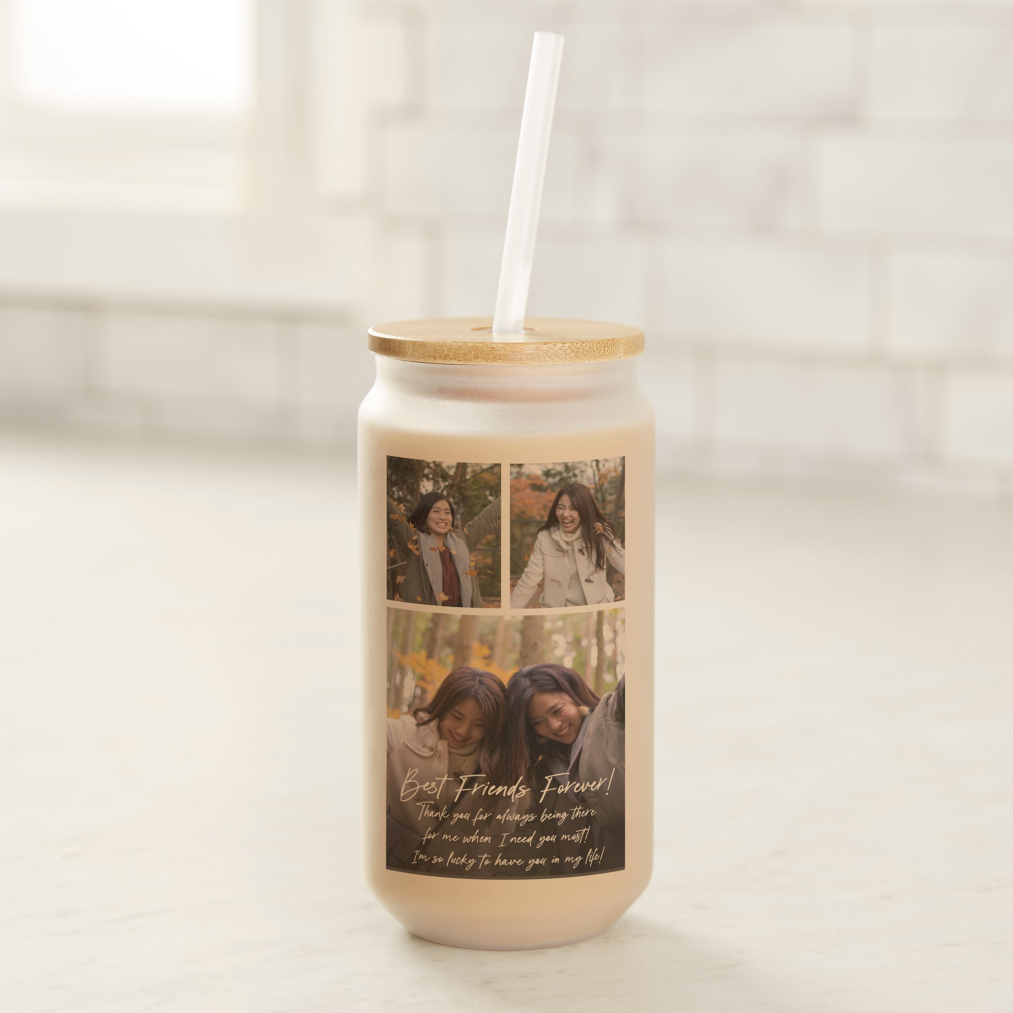 Sip in style with our Photo Expressions For Her Personalized Frosted Iced Coffee Tumbler. A bamboo lid and straw add sustainable style and functionality, making this a perfect choice for travel drinkware and reducing spills in any environment! The bamboo lid fits perfectly on the glass and has a hole specifically built for the straw.