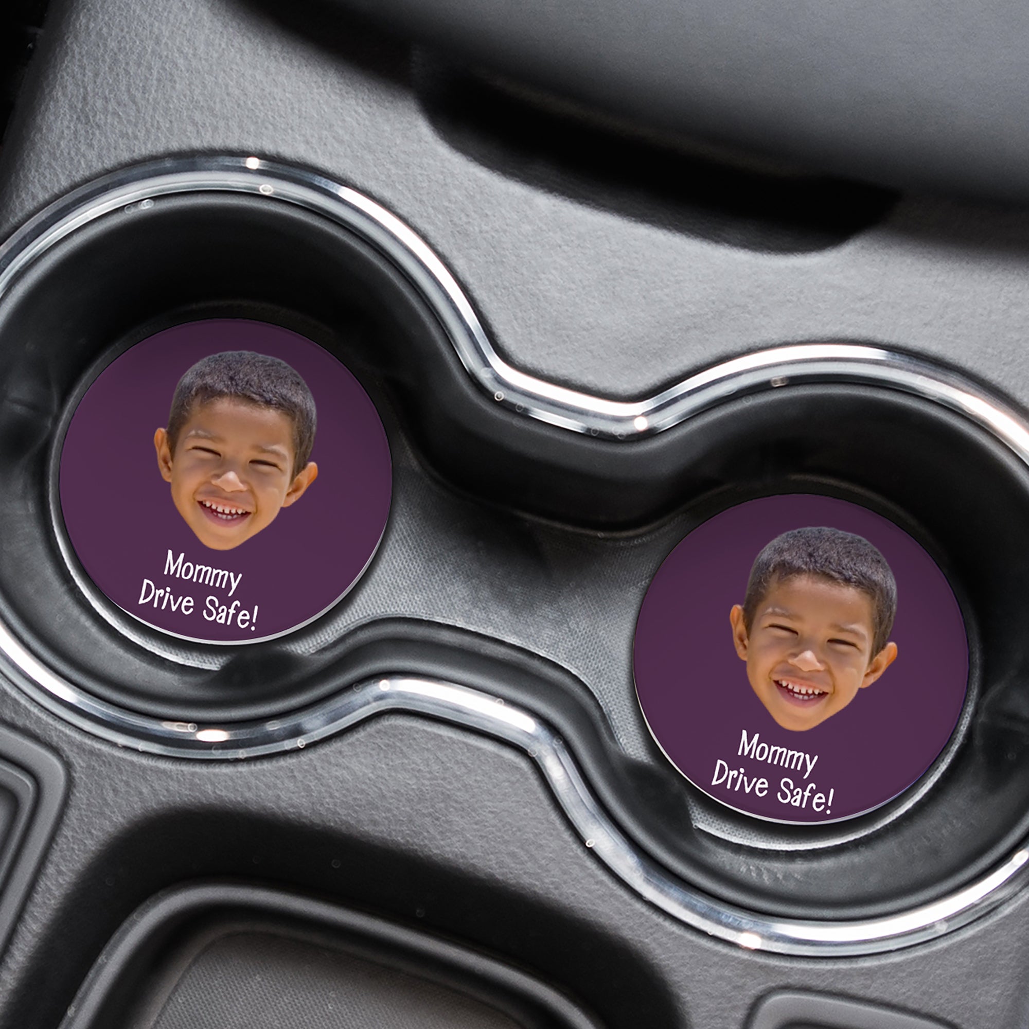 Protect your cup holders against condensation and spills with the Photo Face Cutout Personalized Car Coaster Set of 2. .