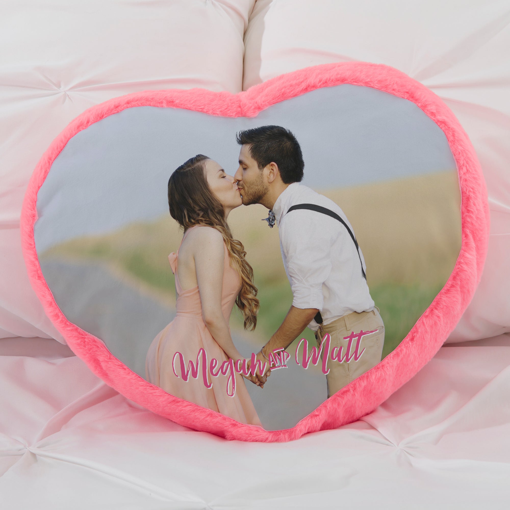 Add a whimsical décor piece to your sofa or bed with our Photo Love Personalized Pink Heart Throw Pillow.