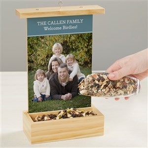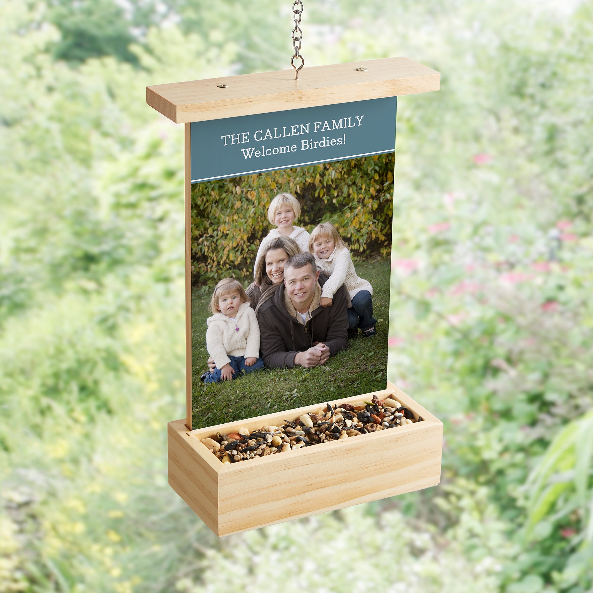 If you love bird watching, hang the Photo Message Personalized Bird Feeder in your yard. The birds feeding will bring joy every time you look out the window.