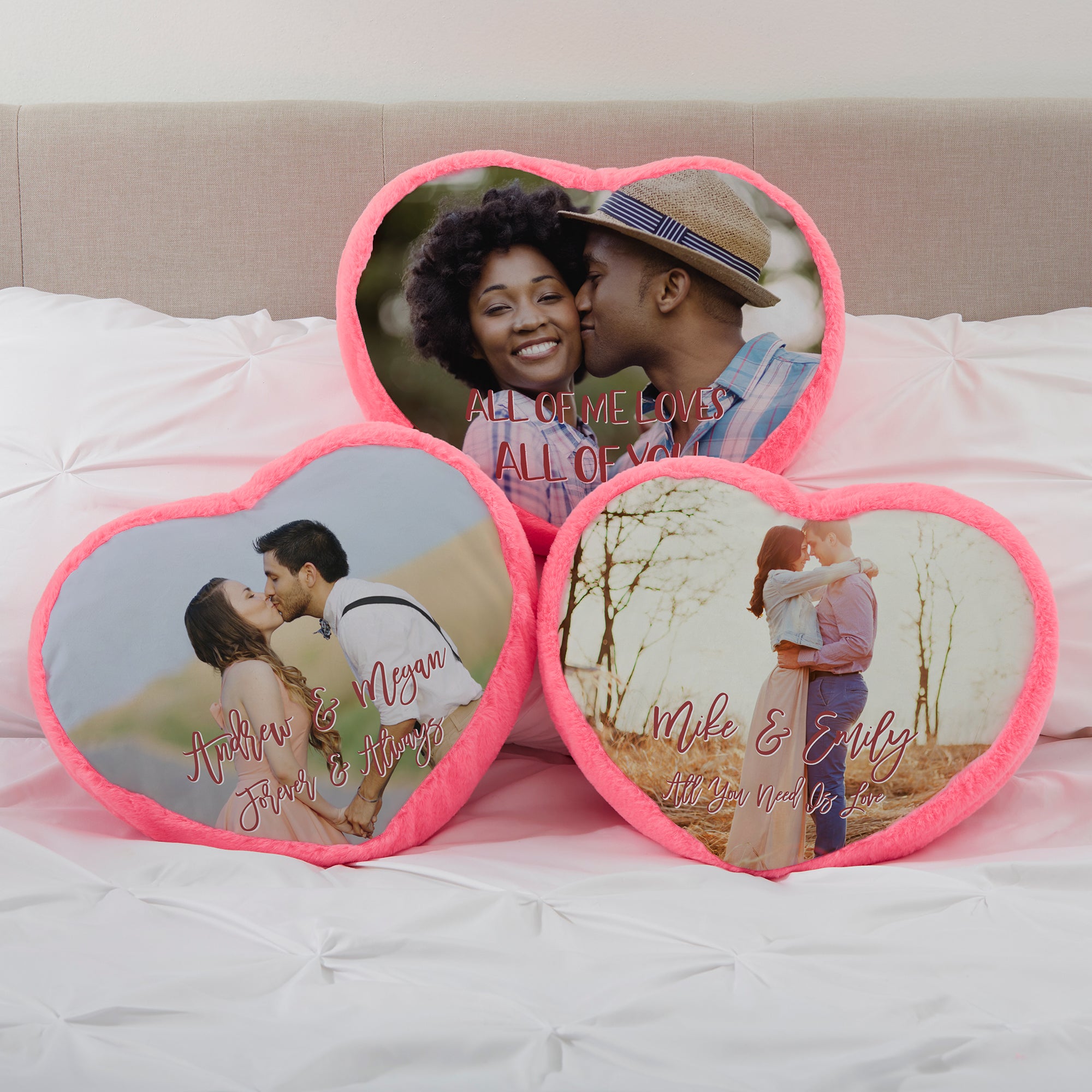 The Photo & Message Personalized Heart Throw Pillow is a unique way to display any photo. Display on any bed or sofa for all to see.