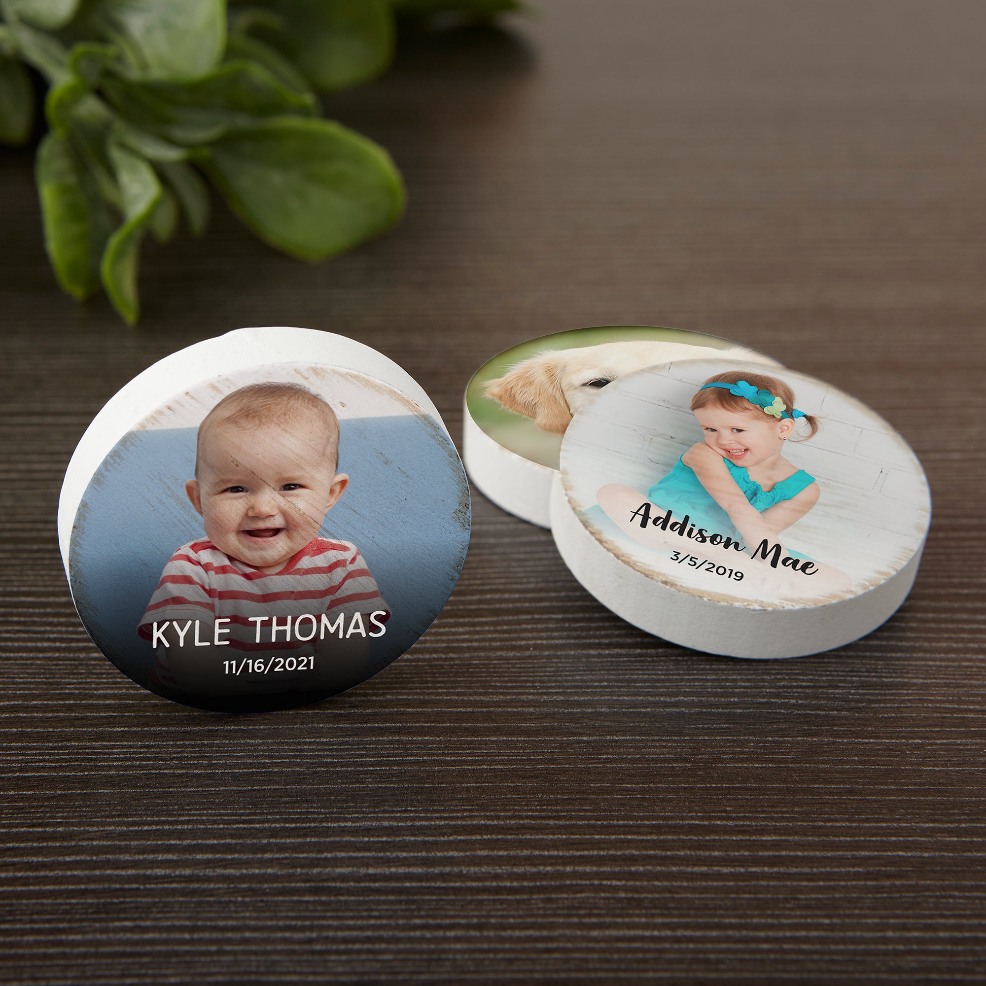 The Photo, Name & Date Personalized Round Wood Magnet makes a perfect accent to our Magnetic Wooden Family Tree (sold separately). Mix and match magnets for your tree and easily update images and family members with new magnets.