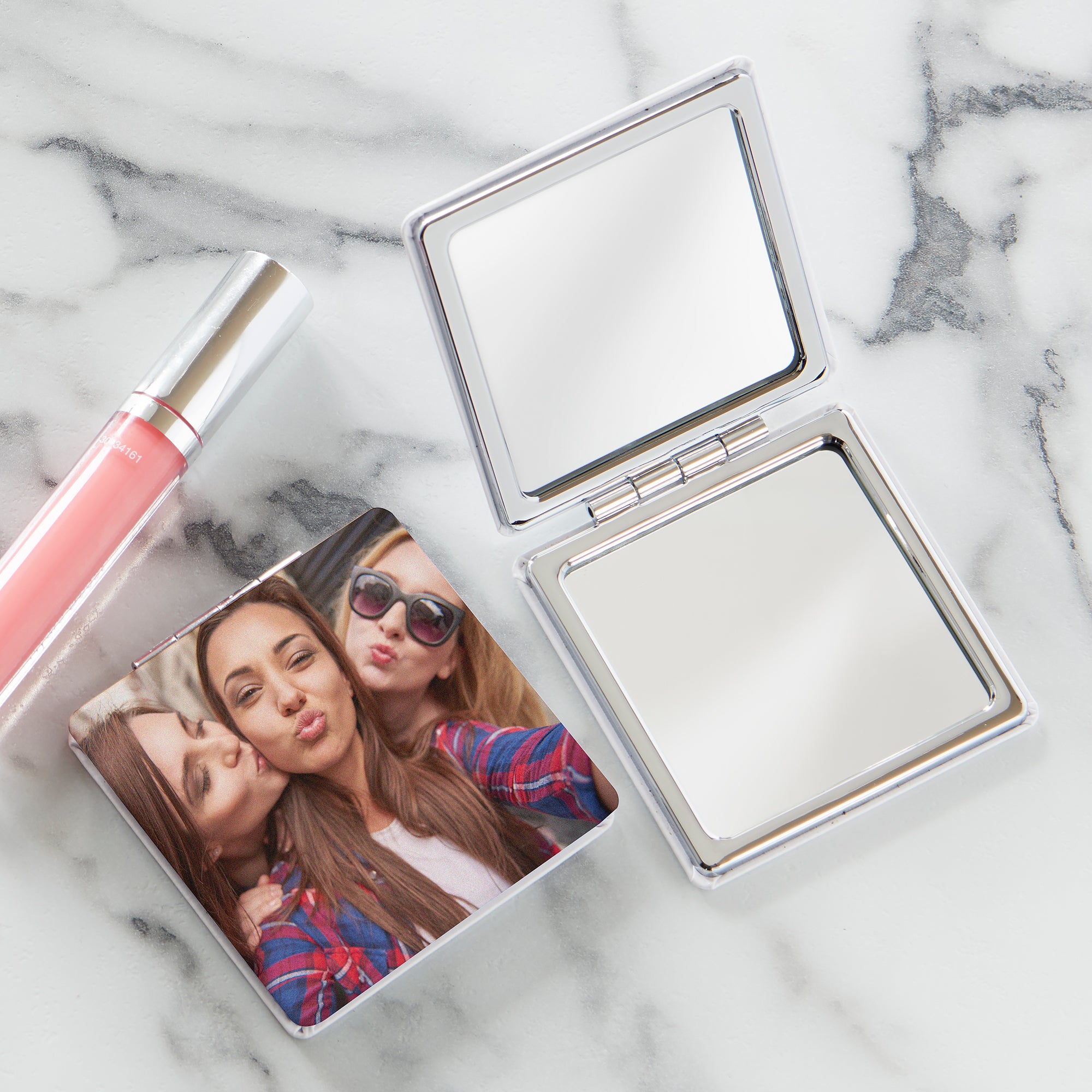 The Picture It Personalized Compact Mirror will be a true reflection of her beauty. This essential accessory was designed for women on the go. Perfectly sized to slip into her purse or pocket, she will use it often to touch up her make-up, hair and more. Makes a thoughtful gift for birthdays, bridesmaids and much more.