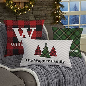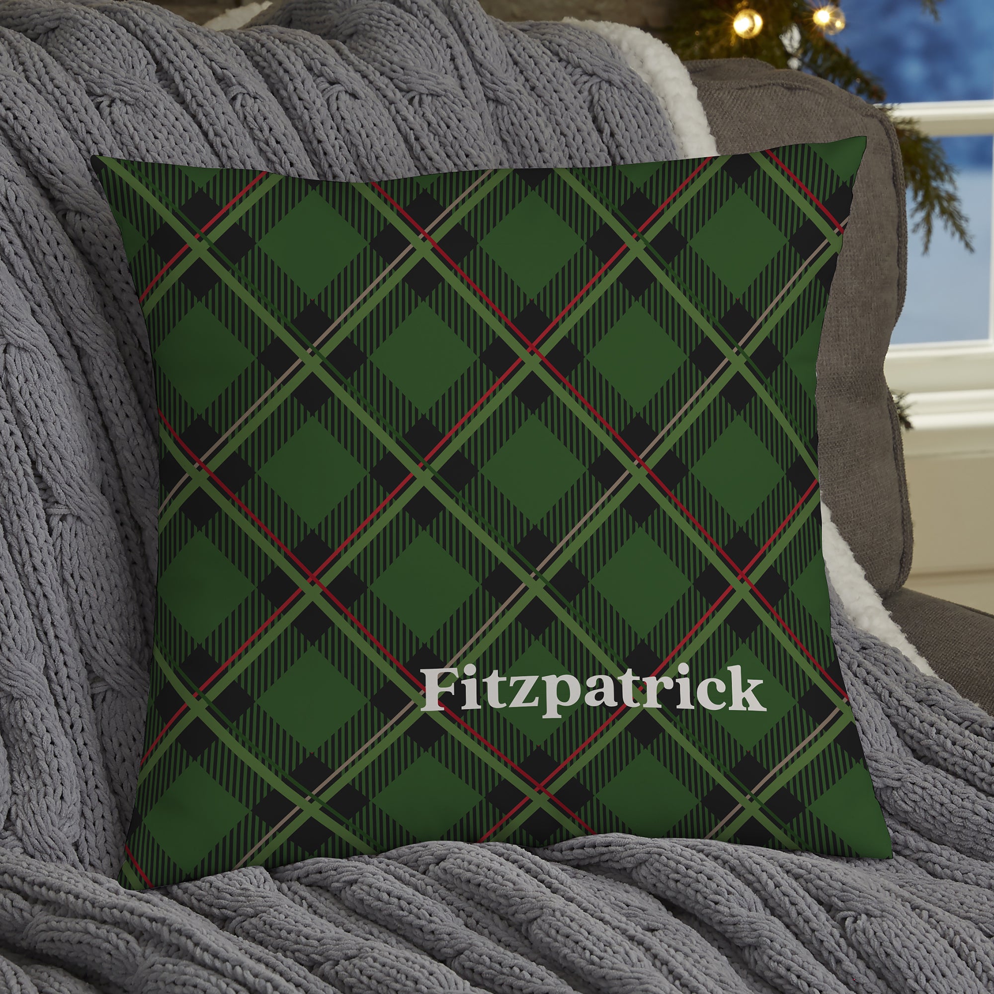 Add some holiday flair to your chair or sofa with our Plaid and Prints Personalized Christmas Throw Pillow.