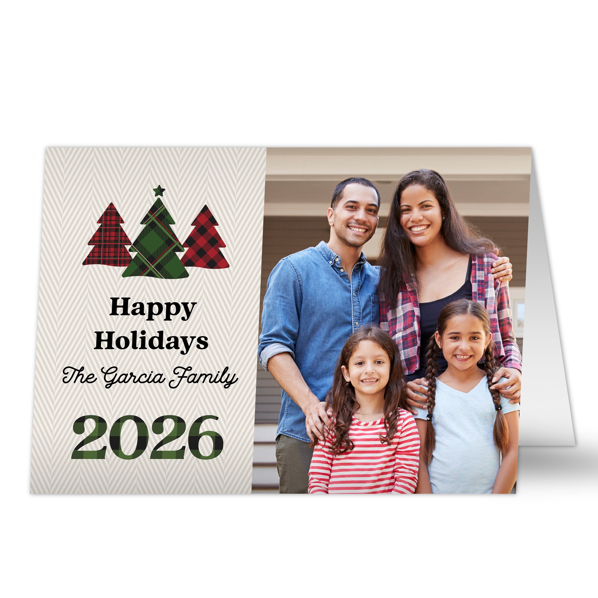 Spread holiday cheer this Season by sending customized wishes to your friends and family with the Plaid & Prints design that is sure to warm the recipient's heart.
