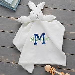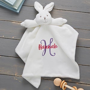 Our Playful Name Baby Bunny Personalized Security Blanket is a cute and cozy gift for any newborn. Quality crafted of plush, durable fabric to last years from infant to toddler and more.