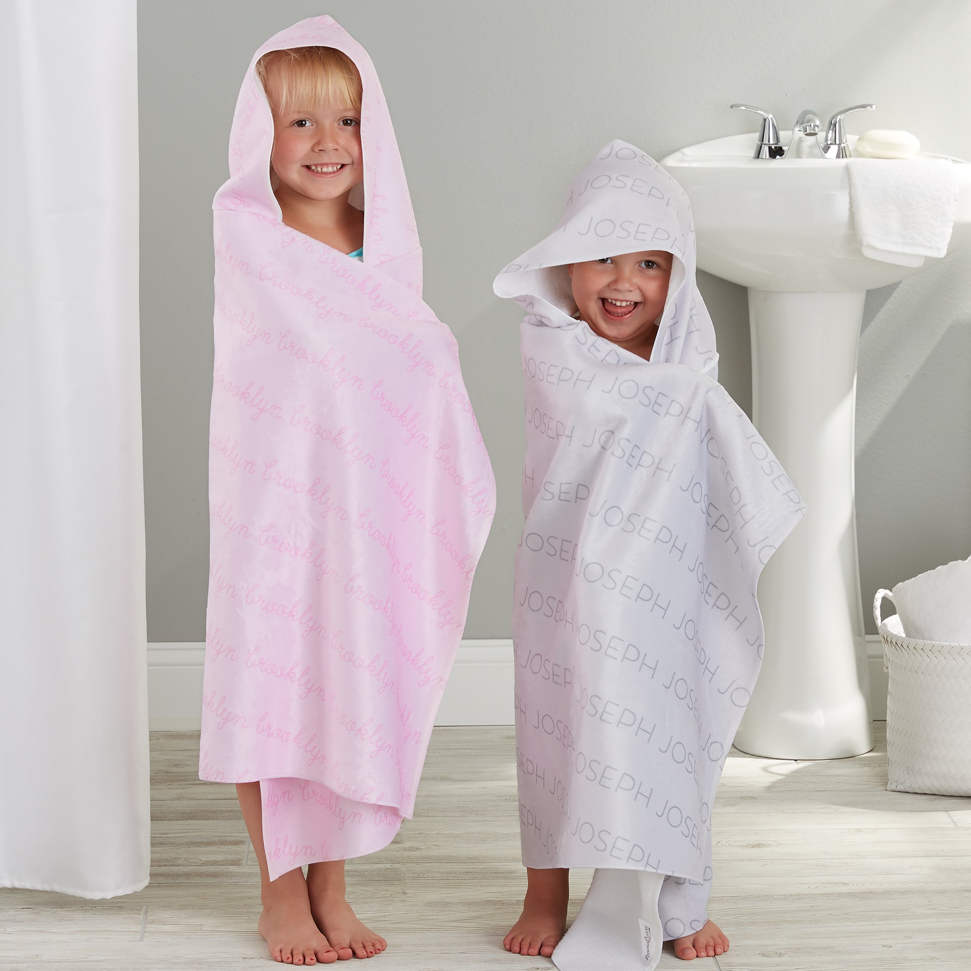 This personalized kids hooded towel makes for a fun bath piece for home, beach or pool side.