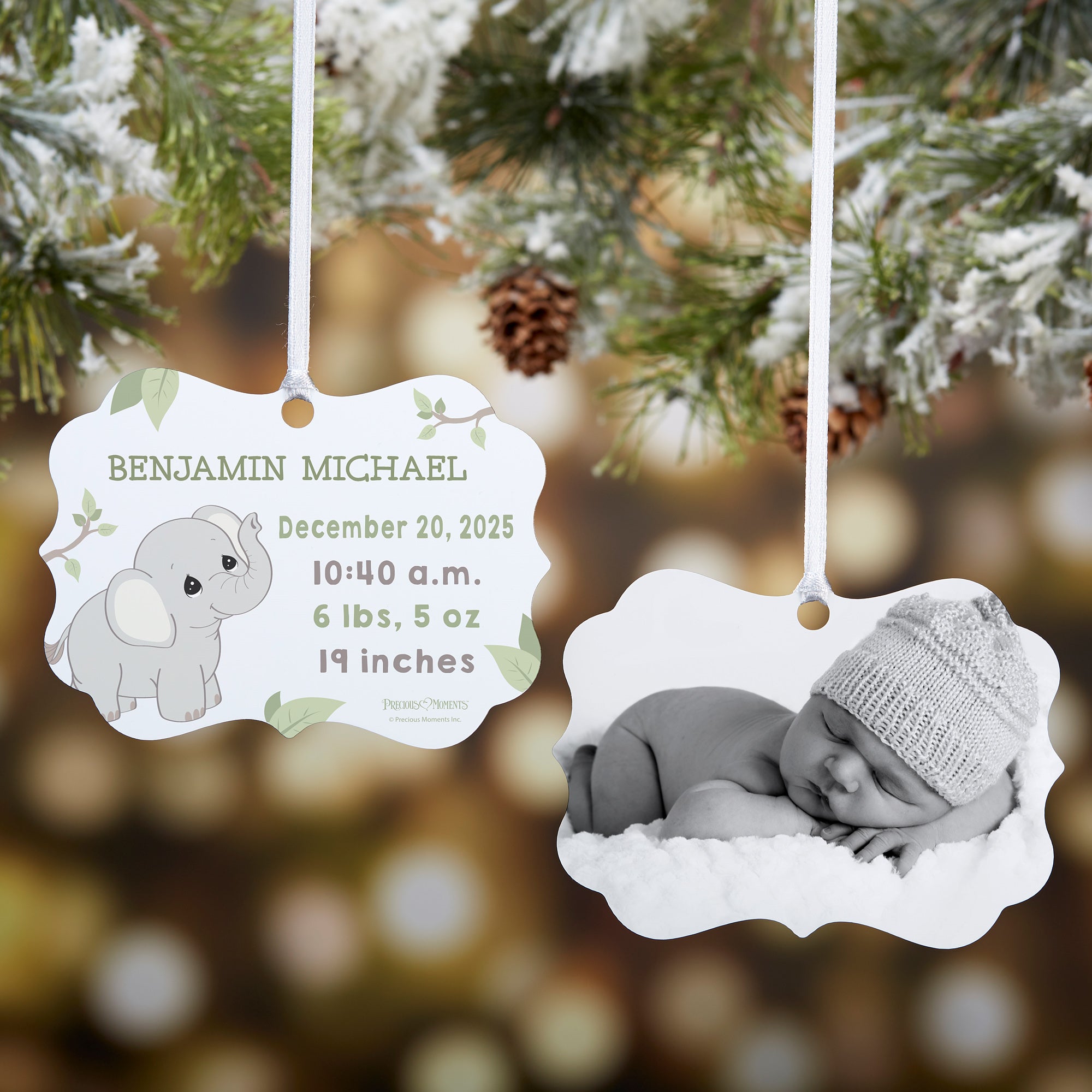 Our Precious Moments® Precious Earth Birth Announcement 2-Sided Photo Ornament adorably highlights your precious new baby's photo and birth details! Makes a perfect keepsake for Baby's 1st Christmas!